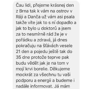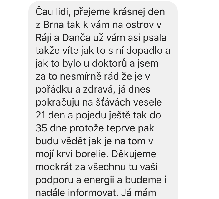 Daniela po 21 dnech úplně bez nádoru se skvělými výsledky, ale Petr, ten jel dál.